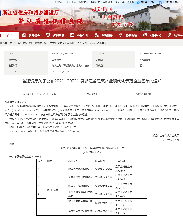 2023年4月,国丰集团荣获浙江省建筑产业现代化示范企业。