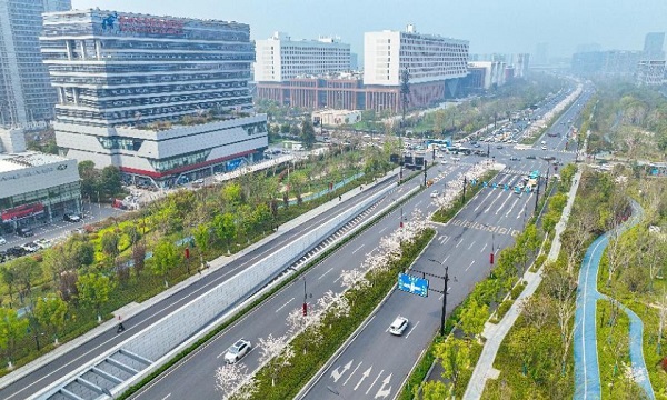 文一西路(东西大道—荆长大道)提升改造工程道路两侧景观绿化设计采购施工(EPC)总承包项目工程东起邱桥港,西至智溢路,长度约为 6.8km。两侧沿线拥有得天独厚的 20-50米宽的线性绿廊,设计以“一廊、双脉、六心”为整体景观构架,沿线两侧绿带未来将以多彩自然的植物群落、智慧便民的绿道体验,活力品质的街景空间,科技靓眼的城市节点为主要特色,成为自然生态的“碳汇”林带、科技便民的“智慧”绿廊、未来生活的“魅力”窗口。工程于2022年4月22日开工,并于2022年11月9日完成竣工验收。