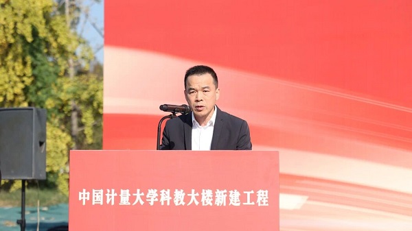 中国计量大学相关领导为开工仪式致辞。项目旨在打造集产教融合、科教融合、国际合作、开放共享、成果转化等功能于一体的高能级平台,推动教育链、产业链、人才链、创新链的纵向贯通与横向融通,集成人才培养、产业服务、科学研究、实习实训等综合功能,努力建成计量人才实训基地与国家计量科技创新高地。